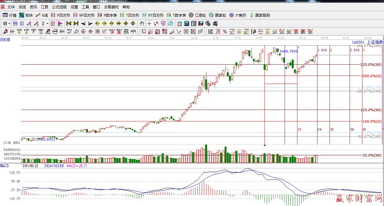 ★依據贏家江恩理論系統波段百分比提示:2月26日回踩江恩百分比90度支撐后,強勢回升,上方阻江恩百分比240度,3436點,270度,3486點,短周期阻力是3317-3362點。