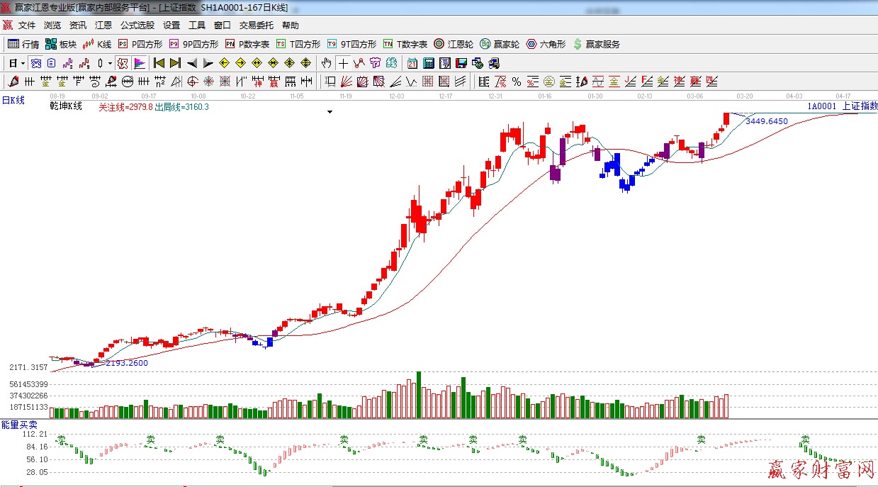☆依據贏家江恩理論系統能量買賣提示:紅色能量柱看多,但與前期呈現小幅背離走勢,謹慎看多。