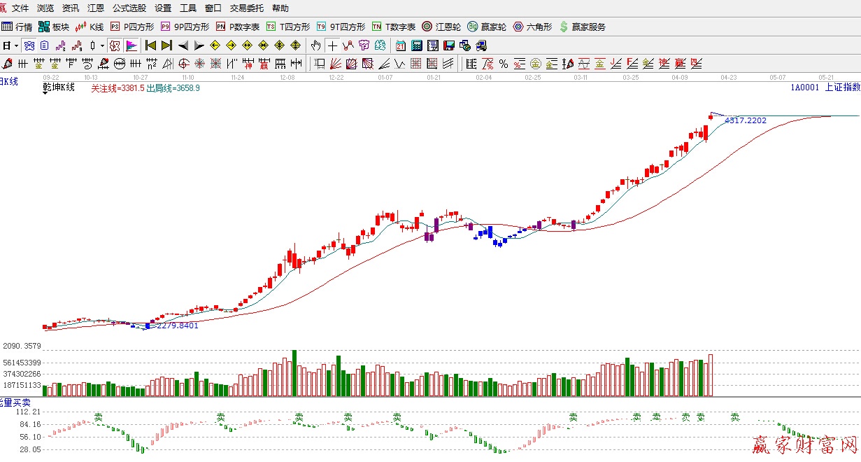 ☆依據贏家江恩理論系統能量買賣提示:有“賣”字出現,指標鈍化,謹慎看多。