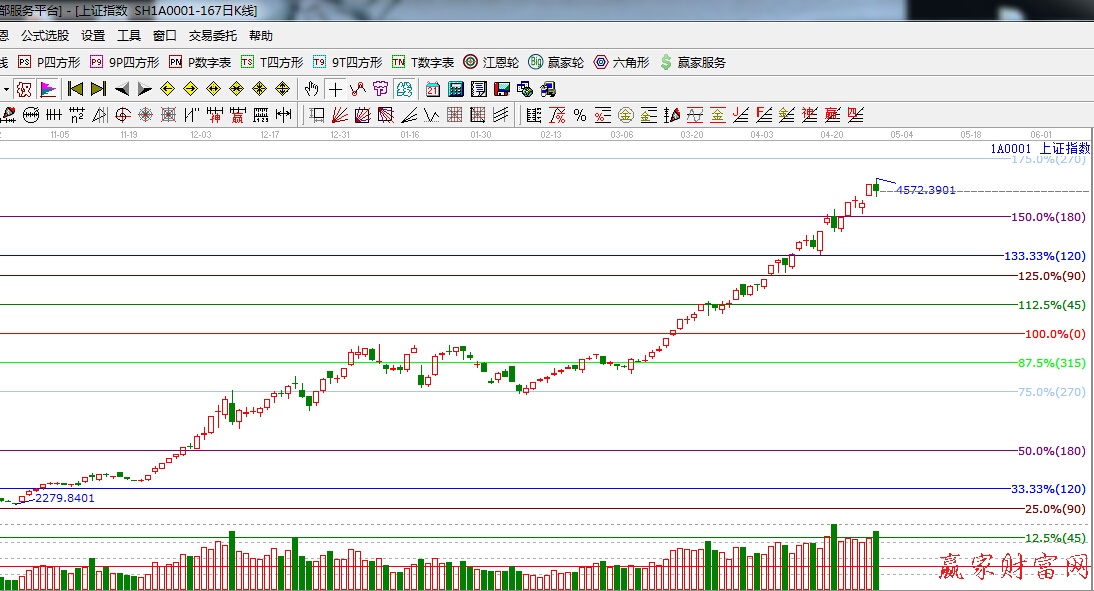 江恩看盤綜述:依據贏家江恩技術工具分析得出: 周二滬深兩市震蕩加劇,盤面顯示整體市場分化嚴重,藍籌股相對較強,創業板出現下跌,在滬指連續的逼空的情況下,又恰逢五一假期,短期震蕩調整實屬正常,下方極限位置是江恩180度4300點,震蕩整理之后仍會繼續向上攻擊江恩270度4700附近。操作上,逢低仍是調倉以及布局良機,金融股首選銀行、券商;另外,煤炭、有色、電力、化工也可逢低關注。