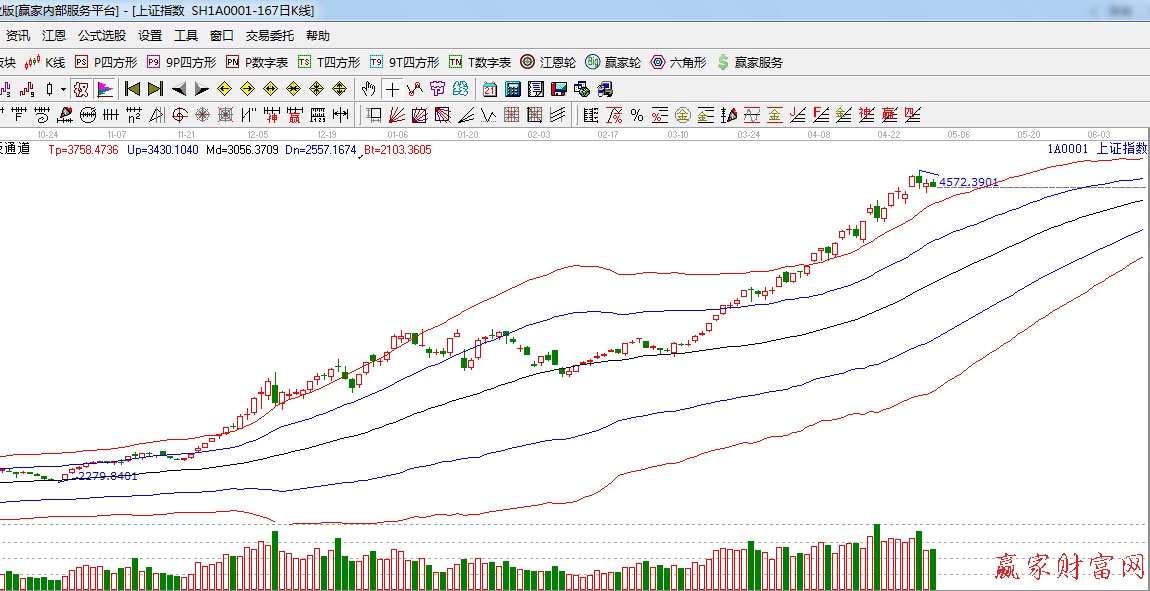 極反通道提示:紅色外軌超強(qiáng)區(qū)域,趨勢(shì)強(qiáng)勢(shì),趨勢(shì)看多。
