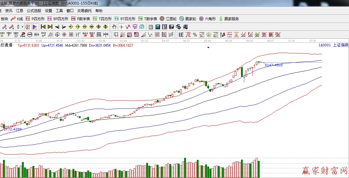 ★依據贏家江恩理論系統極反通道提示:藍色外軌線上方,近一步臨近上方紅色線阻力位5300點附近,謹慎為主。