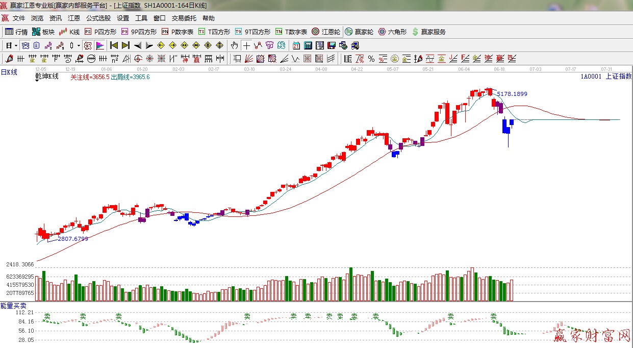 ☆依據(jù)贏家江恩理論系統(tǒng)能量買賣提示:綠色能量柱縮短,謹(jǐn)慎看空。