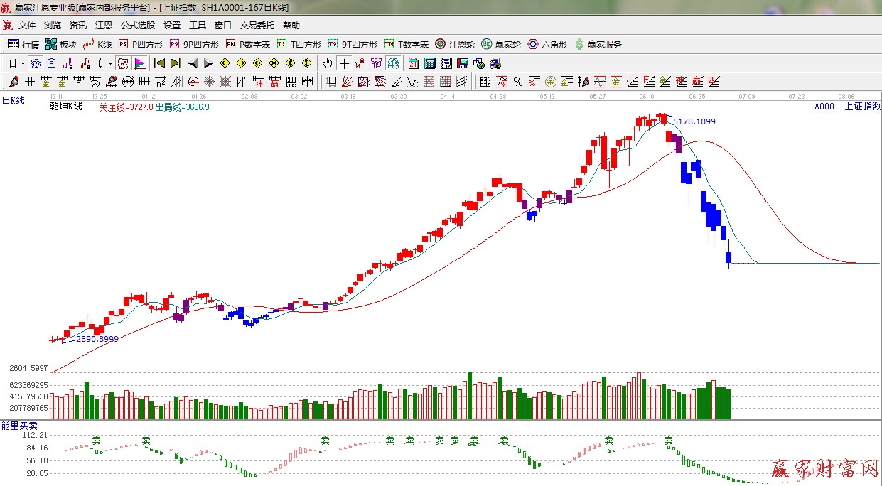 江恩看盤綜述:依據(jù)贏家江恩技術(shù)工具分析得出:周末再發(fā)重大利好,7月4日由21家證券公司將以合計(jì)不低于1200億元,用于投資藍(lán)籌股ETF.4日晚間,IPO發(fā)行正式被要求暫停,券商1200億救市是前所未有的救市措施,加上IPO暫停,市場(chǎng)的供求關(guān)系將發(fā)生變化,在國(guó)家不斷發(fā)力救市的情況下,市場(chǎng)短時(shí)期起碼能夠穩(wěn)定下來,技術(shù)面,近期一直提到極反通道藍(lán)色弱勢(shì)外軌線附近震蕩筑底,依據(jù)物極必反原則短期將有反彈。明天的多空決戰(zhàn)日,預(yù)計(jì)會(huì)出現(xiàn)報(bào)復(fù)性上漲