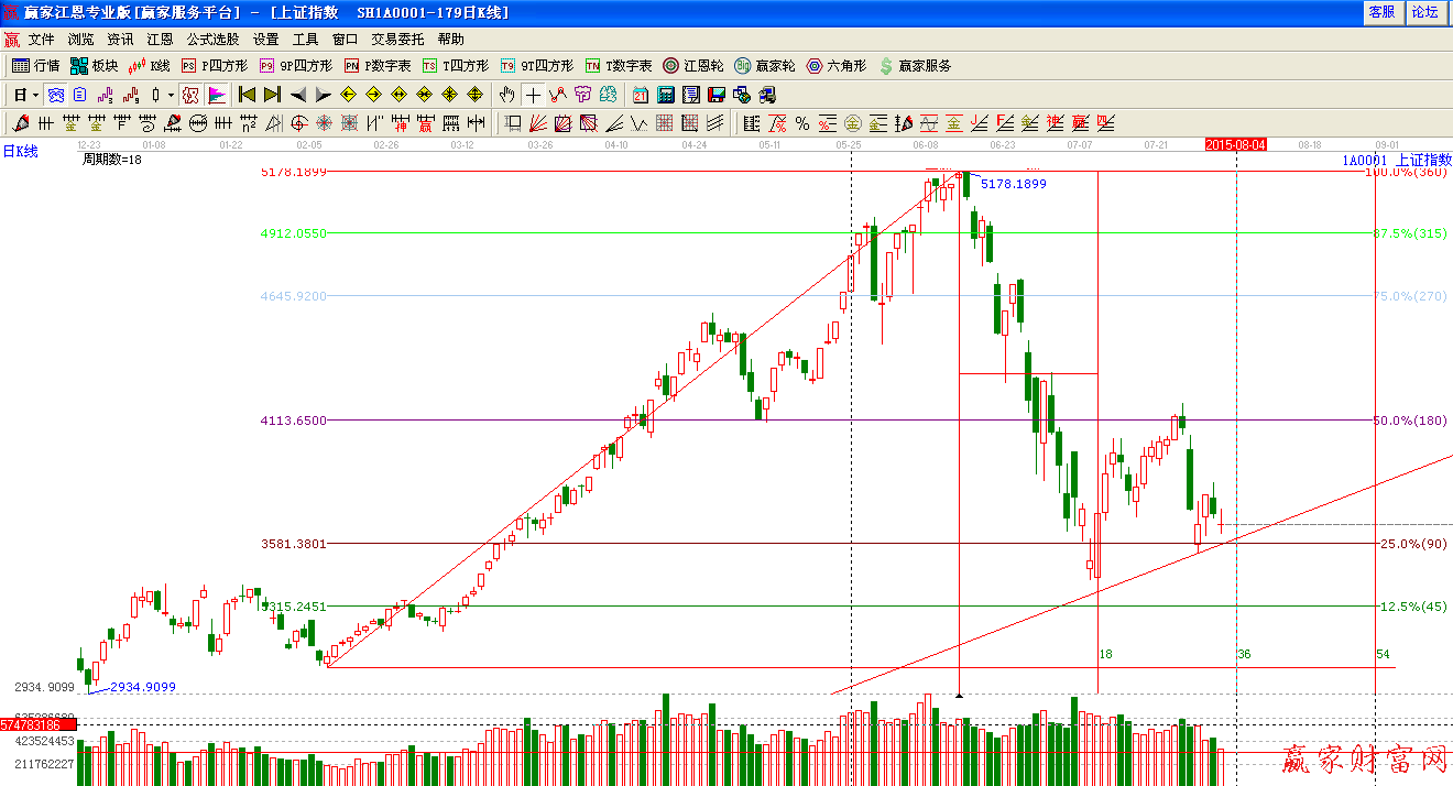 江恩看盤綜述:依據(jù)贏家江恩技術(shù)工具分析得出:周五滬指圍繞3600點縮量震蕩,市場投資者信心不足,政策面盡管管理層力挺股市,國家隊資金托底,但這也是意味著指數(shù)不會發(fā)生深跌,出現(xiàn)報復(fù)性反彈的可能性也很小,所以短期市場溫水煮青蛙行情或?qū)⒀永m(xù),明日短線重點留意3600點的,此位置如果一旦破了,很可能就會向下繼續(xù)尋底,甚至創(chuàng)出新低,那時市場將會產(chǎn)生更多新的機會。操作上,嚴(yán)格控制倉位,高拋低吸差價為主。下一短線時間窗口留意8月4日。