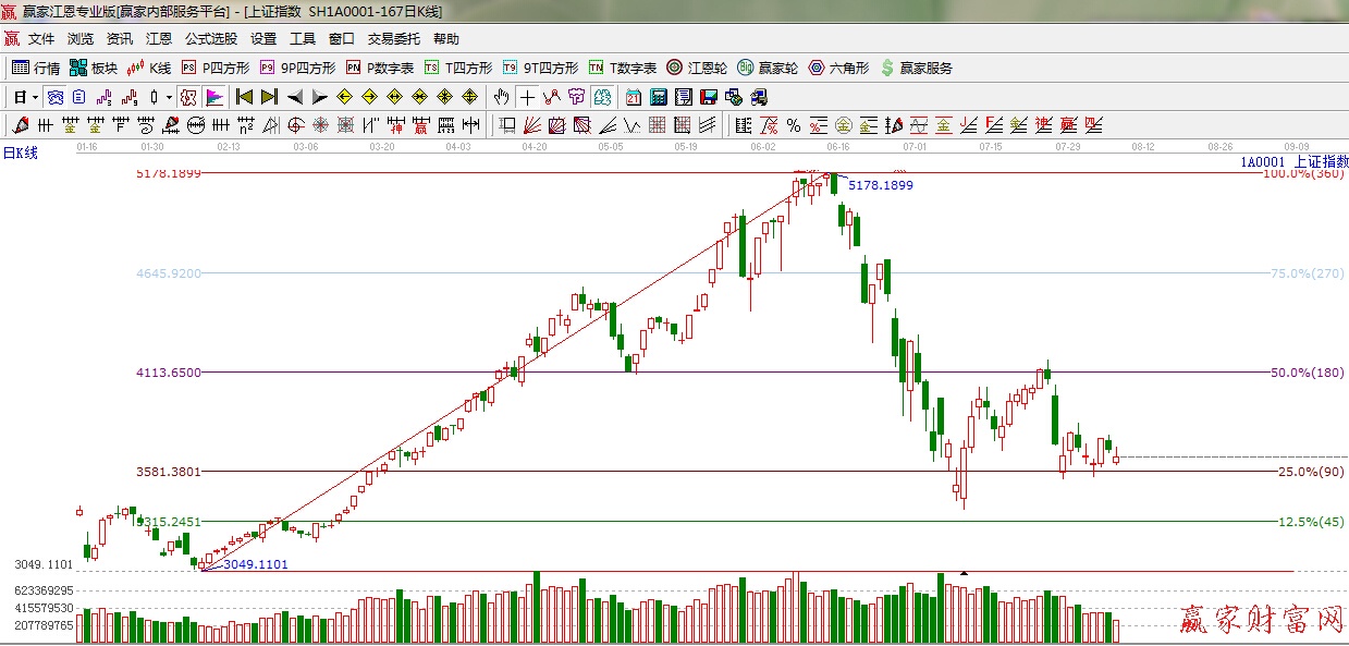 江恩看盤綜述:依據(jù)贏家江恩技術(shù)工具分析得出:周四早盤A股延續(xù)前日下跌走勢(shì),大幅低開一度逼近3600點(diǎn),在新能源汽車全產(chǎn)業(yè)鏈等板塊帶動(dòng)下,強(qiáng)勢(shì)反彈,尾盤煤炭股啟動(dòng),遏制了大盤的進(jìn)一步回落。總體看,市場(chǎng)底部尚未夯實(shí)。3600點(diǎn)是一個(gè)關(guān)鍵點(diǎn)位。此位置整理不破,滬指有望迎來(lái)反彈,時(shí)間窗口10日左右(周六是立秋),操作上,可以盤中逢跌買入年內(nèi)漲幅落后的資源股,對(duì)于國(guó)資改革和軍工板塊中漲幅過(guò)大品種要適當(dāng)?shù)臏p少。