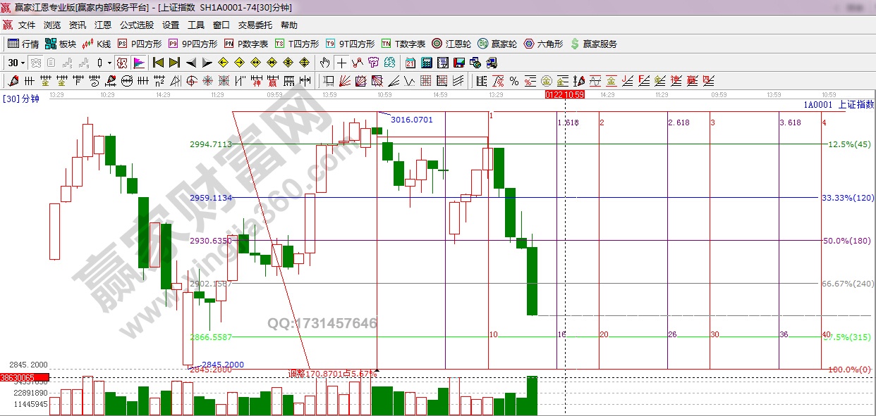 ☆  依據(jù)贏家江恩理論系統(tǒng)江恩波段百分比線提示:短周期30分阻力位2902,下方支撐2866點,2823點,2788點。