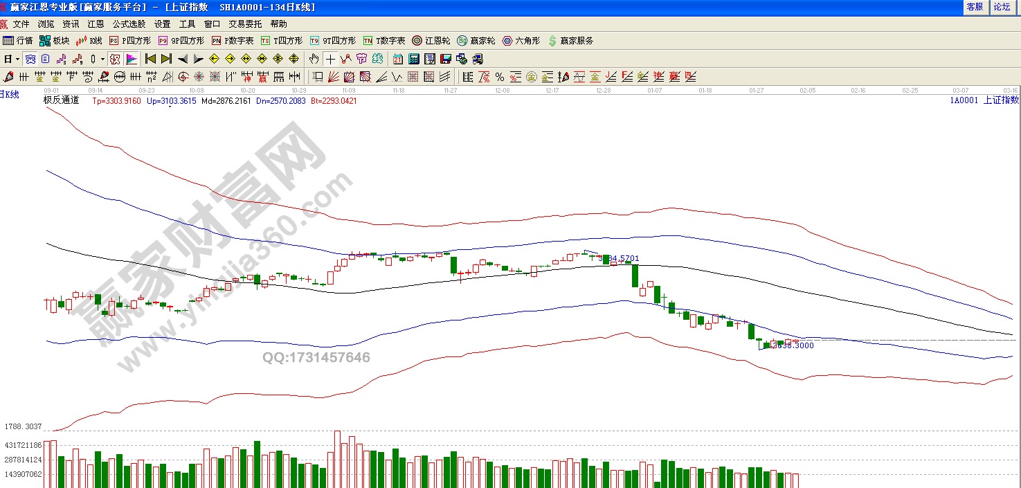 ☆ 依據贏家江恩理論系統極反通道提示:滬指在極反通道弱勢超跌區域,物極必反 看多。