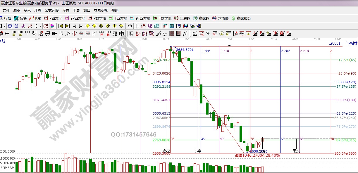 ★ 依據贏家江恩理論系統黃金時間周期線提示:“立春”2月4日,窗口之后下一個窗口是2月18日。