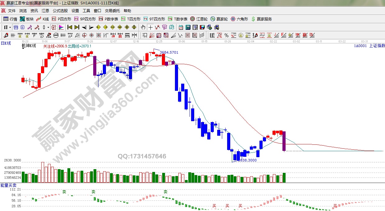 ☆ 依據(jù)贏家江恩理論系統(tǒng)乾坤K線提示:紫色警示k線出現(xiàn),破位紅色關(guān)注線,看空。