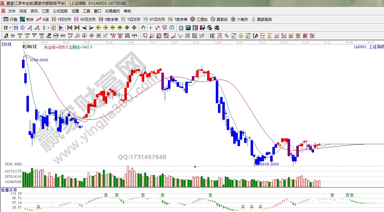 ★ 依據贏家江恩理論系統乾坤K線提示:k線處于紅色關注線之上,依據規則紅色線不破,看多。