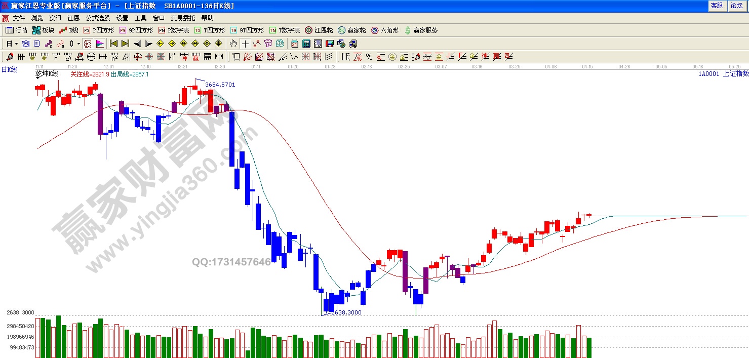 ☆  依據贏家江恩理論系統能量買賣提示:紅色能量柱縮短,并有“賣”字出現適當謹慎。