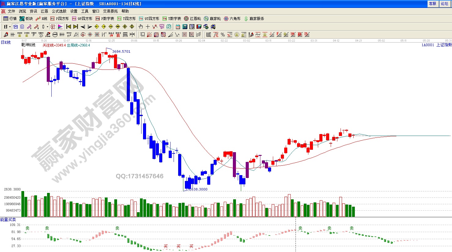 ☆  依據(jù)贏家江恩理論系統(tǒng)能量買賣提示:紅色能量柱縮短,并有“賣”字出現(xiàn)適當(dāng)謹(jǐn)慎。