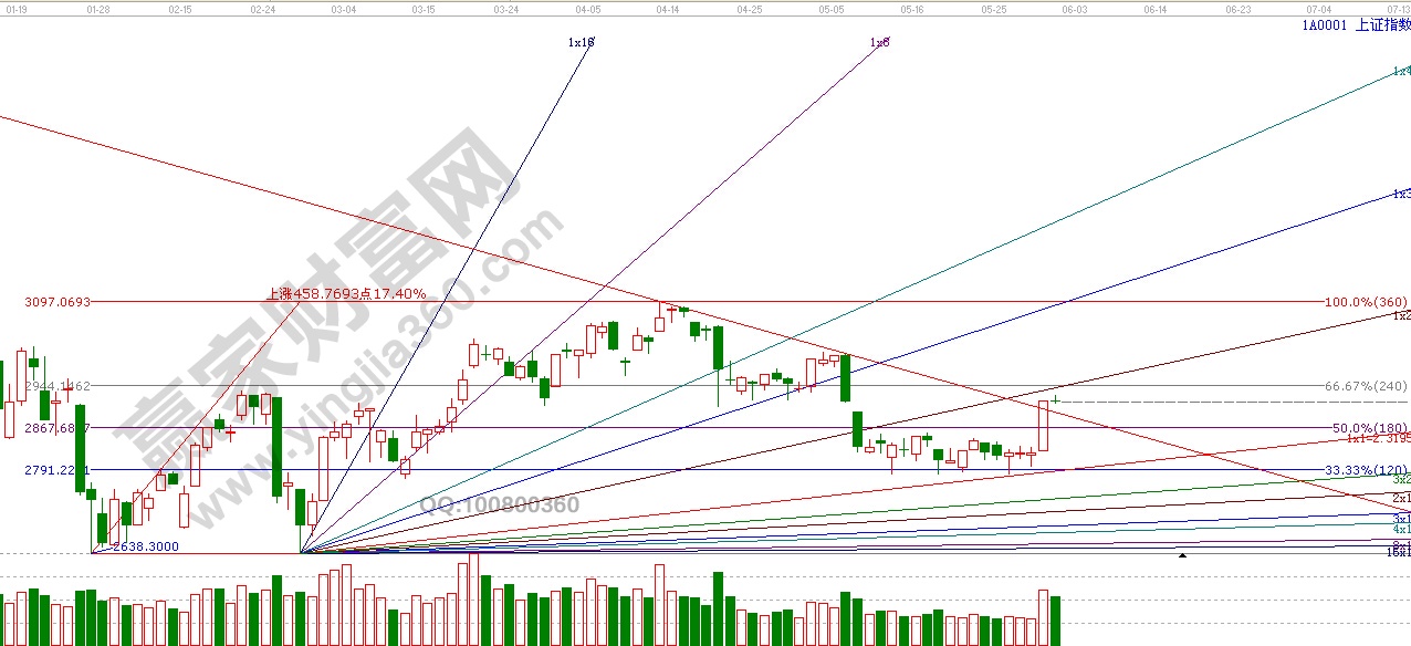 江恩看盤綜述:依據(jù)贏家江恩技術(shù)工具分析得出:股指大幅上行后,短期面臨生命線,以及江恩角度線1x2線的阻力,價格在2945點附近。指數(shù)小幅整理再次上行需要重點留意此位置,如不能放量收復(fù),預(yù)計大盤短線將再次震蕩整理為主,操作上,建議重點關(guān)注中期業(yè)績大幅預(yù)增標(biāo)的個股。