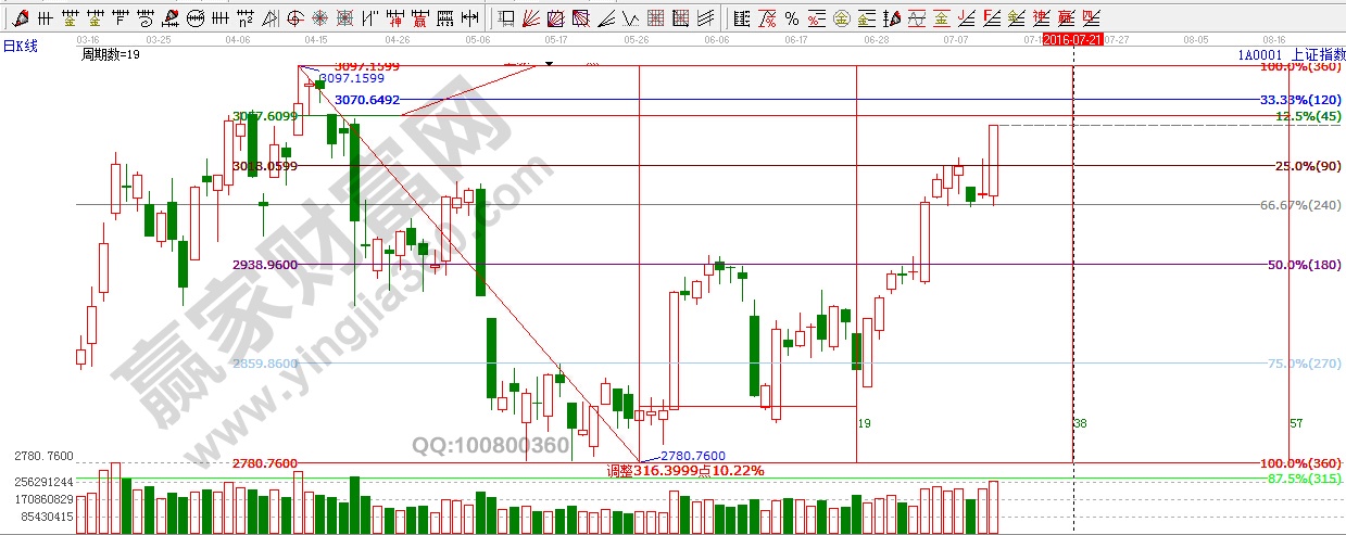 江恩看盤綜述:依據贏家江恩技術工具分析得出:這就是趨勢的力量,在量能的支撐下,短期的調整都是以橫盤消化,周二,滬指放量創出反彈新高,江恩90度3020點位置轉換為支撐,下一步將關注3070點,以及前高3097點附近。時間上留意14日左右,以及21日。操作上,建議投資者繼續挖掘尚未出現大幅反彈的品種,但不輕易追漲,此外對于中報業績大幅預增品種要加以重視。