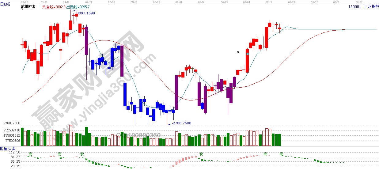 ☆依據贏家江恩理論系統能量買賣提示:紅色能量柱消失,并伴隨有賣字出現,短線保持謹慎。