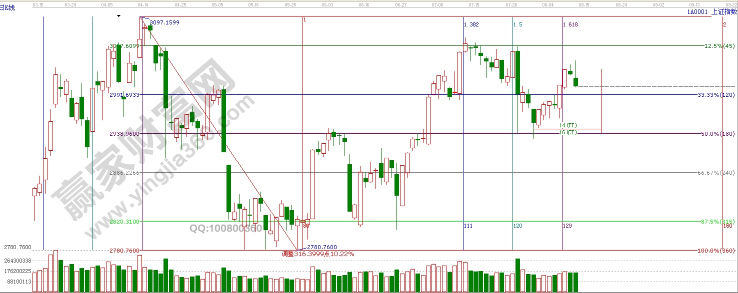 ★依據贏家江恩理論系統黃金時間周期線提示:8月8日窗口,股指強勢拉升,之后的窗口要到8月18日了。