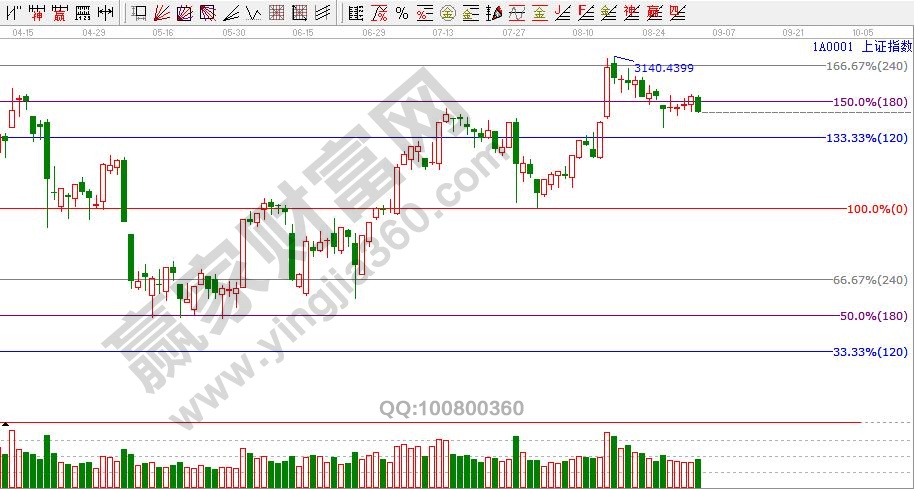 ☆依據(jù)贏家江恩理論系統(tǒng)江恩波段百分比線提示:滬指沖高回落,下方支撐120度為3034點,上方阻力位3131點。
