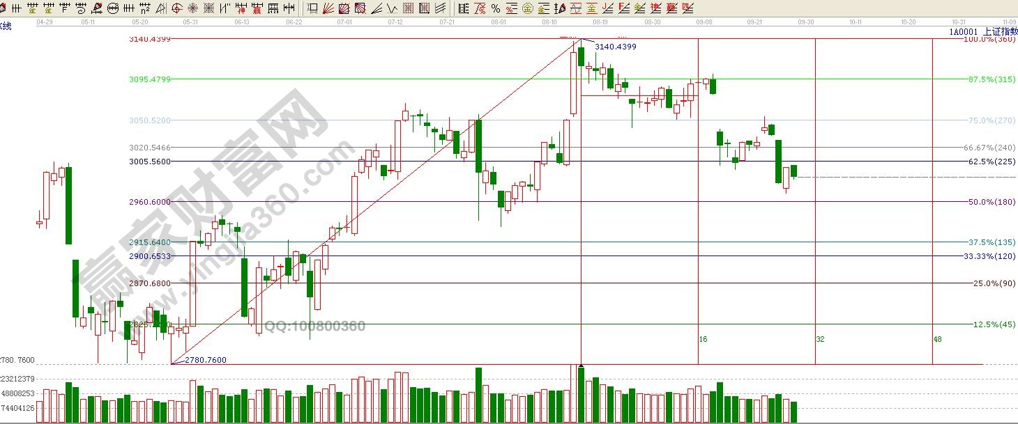 ★依據贏家江恩理論系統江恩波段百分比線提示:以2780點到3140點做波段百分線,探底回升,最低點位2969點,短線支撐留意2980點,阻力位225度3005點,240度是3020點附近。