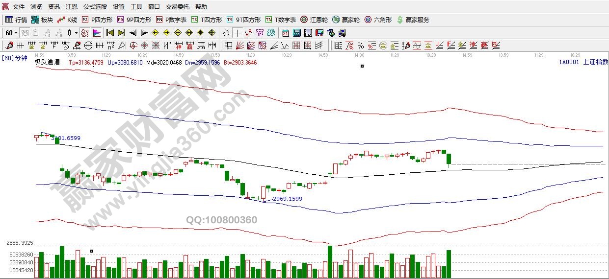 ★依據贏家江恩理論系統極反通道提示:滬指小幅高開后早盤持續窄幅震蕩,午后跳水,回踩至60分生命線附近,生命線價 格是3030點需要留意。