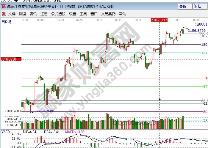 板塊方面,黃金概念、S股、OLED、股權轉讓、民營醫院、房地產等板塊漲幅居前。券商信托、工程機械、船舶、保險、鐵路基建、海工裝備等板塊跌幅居前。美國大選落幕,A股市場也將回歸理性,從新回到自身的運行軌跡。技術方面,短周期15分鐘失守生命線,30、60分鐘在生命線徘徊,預計明日短線還會有反復,同時今日快速的下探也洗出一波浮籌,波段趨勢以震蕩上行的走勢觀點不變。