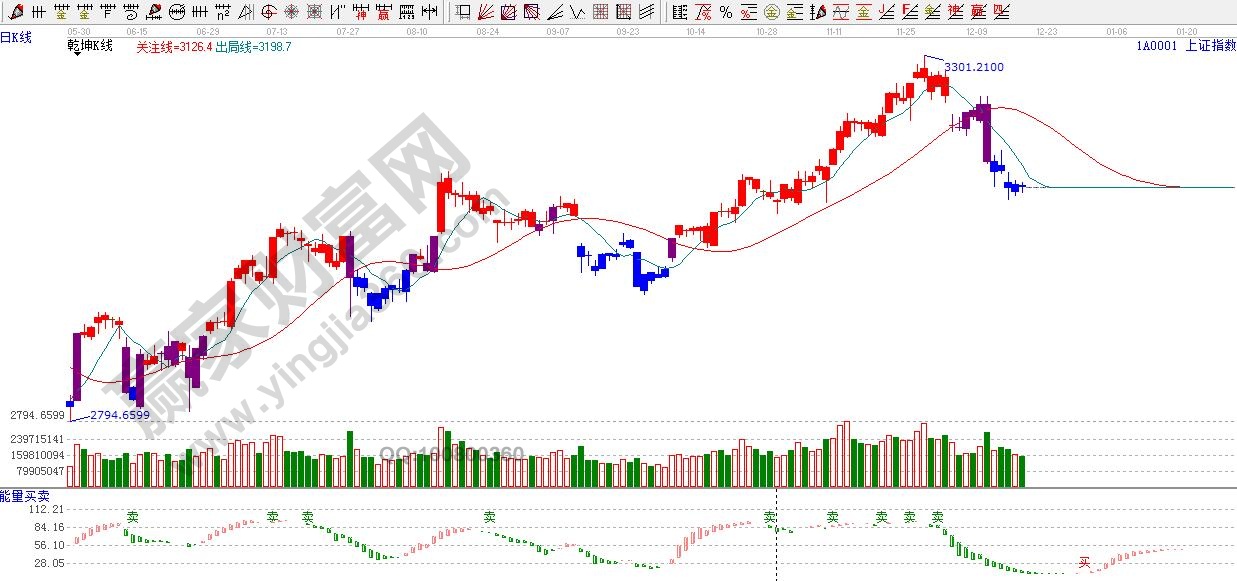 ☆依據贏家江恩理論系統能量買賣提示:綠色看空能量柱縮短,短期有抄底跡象。