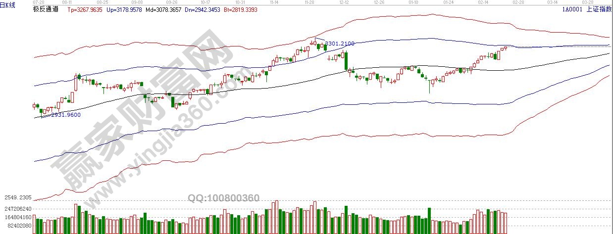 周三,滬深兩市早盤窄幅震蕩,尾盤股指直線拉升;滬指再創(chuàng)反彈新高。盤面上,水泥建材、鋼鐵、釀酒、石油、公用事業(yè)、機械、汽車等行業(yè)漲幅居前;題材股方面,絲綢之路、海綿城市、鋰電池、債轉股等表現(xiàn)活躍。船舶、煤炭、商業(yè)百貨、券商、次新銀行股等板塊出現(xiàn)調整。消息面,1、新三板研究醞釀再分層,2、中央政治局召開會議討論政府工作報告,3、兩融逼近9000億 融資客追逐哪些行業(yè)。技術面,周三,滬指縮量中再創(chuàng)反彈新高,距離極反通道日線藍色上軌線僅一步之遙,百分比重點阻力位留意3272點附近,指數(shù)當前位置如量能持續(xù)萎縮的話,短期或將有回調需求,依據(jù)極反通規(guī)則,阻力位穩(wěn)健期間先降低倉位為主,個股上宜高拋而忌追進,操作上,重點關注央企改革、一帶一路標的。