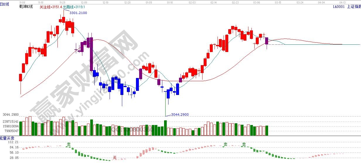 ★依據(jù)贏家江恩理論系統(tǒng)乾坤K線提示:出現(xiàn)紫色警示k線,破位紅色關注線,依據(jù)規(guī)則,紅色關注線之下,看空。