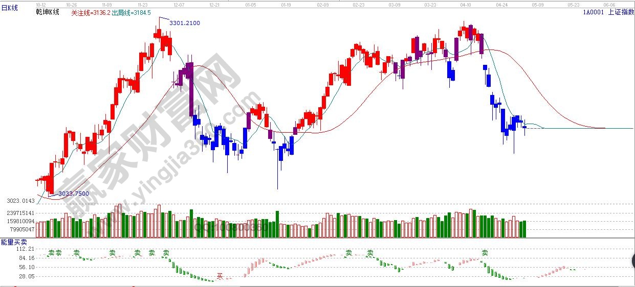 ☆依據贏家江恩理論系統乾坤K線提示:紅色關注線之下,藍色休息區。依據規則:控制倉位,多看少動。