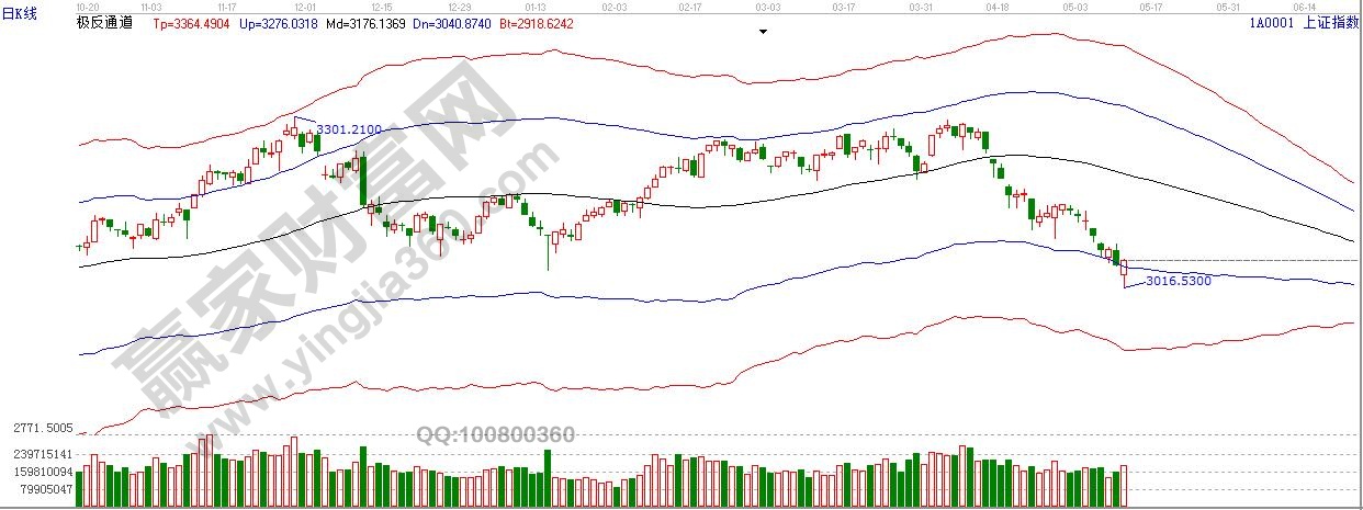 ☆依據(jù)贏家江恩理論系統(tǒng)極反通道提示:滬指再創(chuàng)新低,破位藍(lán)色線(xiàn),依據(jù)規(guī)則,物極必反,短期整理后應(yīng)有超跌反彈機(jī)會(huì),倉(cāng)位控制在3-5成