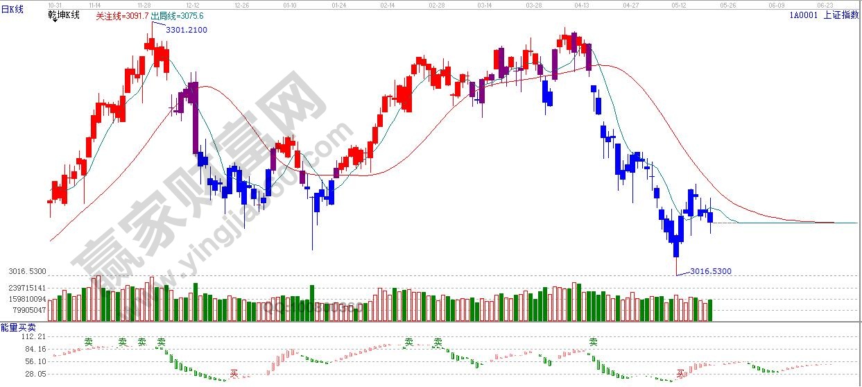 ☆依據贏家江恩理論系統乾坤K線提示:關注線出局線之下,短期弱勢,依據規則,控制倉位,多看少動。