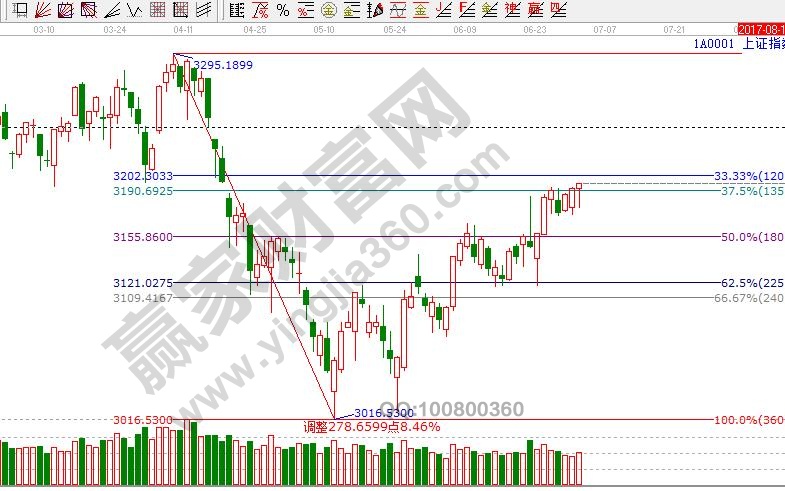 江恩看盤綜述:依據贏家江恩技術工具分析得出:周一,滬指阻力位下維持強勢整理,指數連續上行后短期滯漲明顯,百分比壓力3190--3202點下,成交量低迷,有調整需求,支撐位江恩180度線3155附近。另外,前期的白馬股持續上行之后,短期獲利頗豐,可選擇適當減持,時間上,下一窗口留意7月6日附近,操作上,短期適當高拋,等待低吸機會,板塊上,可繼續跟蹤和潛伏中報業績預增良好的個股。