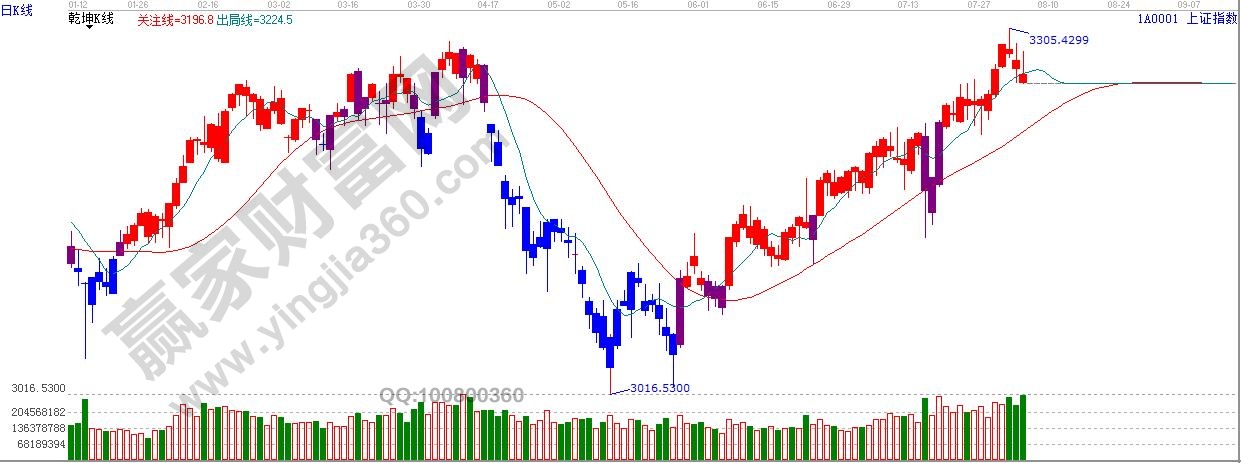 ★依據(jù)贏家江恩理論系統(tǒng)乾坤K線提示:k線紅色k線,破位短線出局線,依據(jù)規(guī)則,短線看空,波段看多。