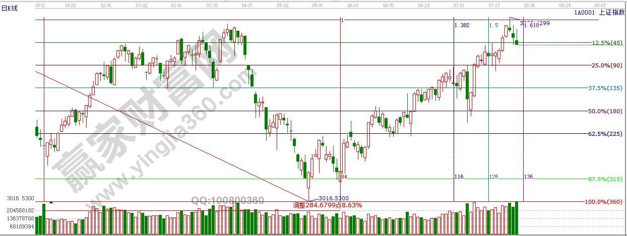 ☆依據(jù)贏家江恩理論系統(tǒng)黃金時間周期線提示:下一下窗口8月8日附近,觀察量價表現(xiàn)。