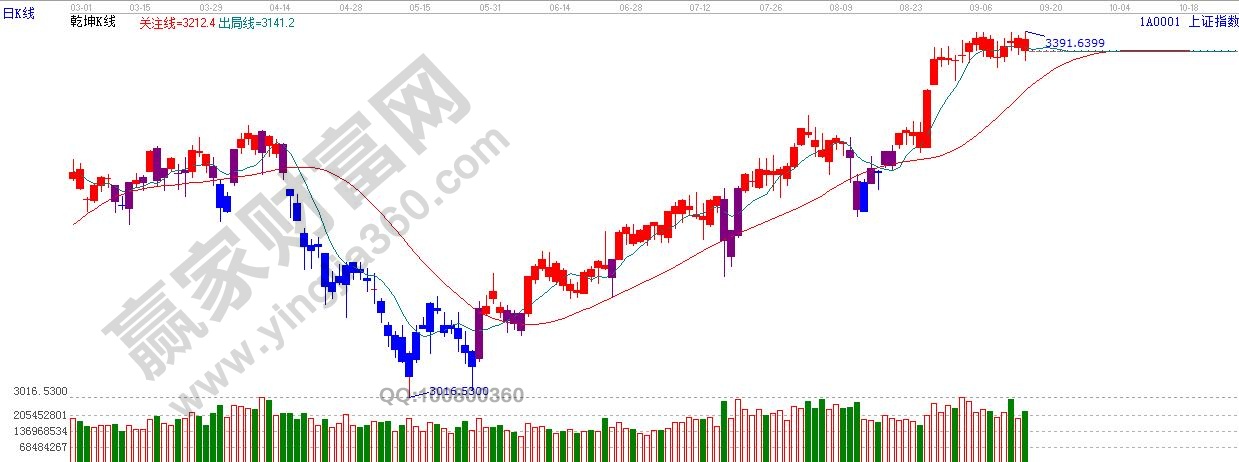 ★依據贏家江恩理論系統乾坤K線提示:收盤破位短線出局線,依據規則,短線保持謹慎。