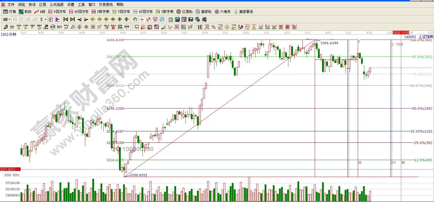 ★依據贏家江恩理論系統極反通道提示:滬指反抽60分生命線未果,今日如期下探前期提到的120分生命線。缺口3330點并未完全回補。短期還有反復,支撐3330點,日線生命線3310點附近。