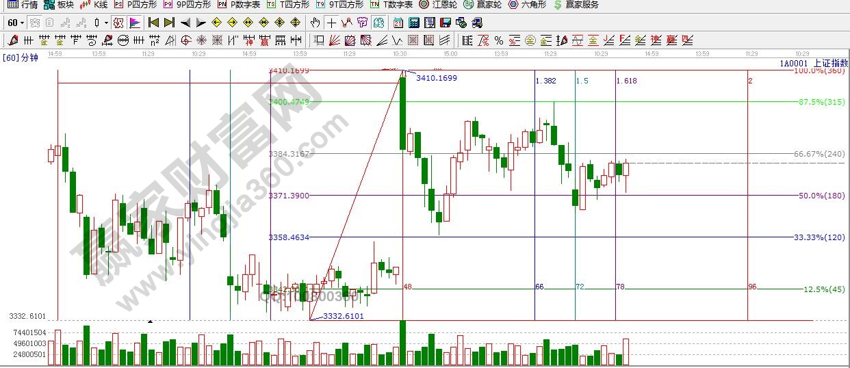 ☆依據贏家江恩理論系統江恩波段百分比提示:短周期阻力3384點,支撐是3357點,3340點附近。