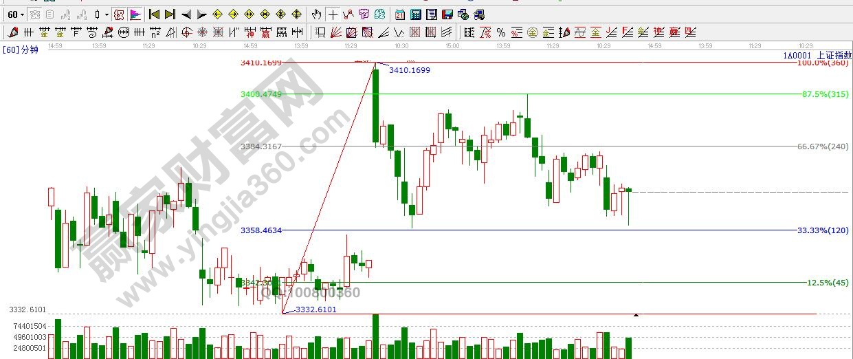 ☆依據贏家江恩理論系統江恩波段百分比提示:短周期阻力3384點,支撐是3357點,3340點附近。