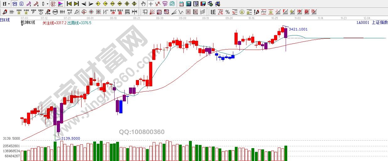 ★依據(jù)贏家江恩理論系統(tǒng)乾坤K線提示:回踩關(guān)注線,出現(xiàn)紫色k線,短線保持謹(jǐn)慎。