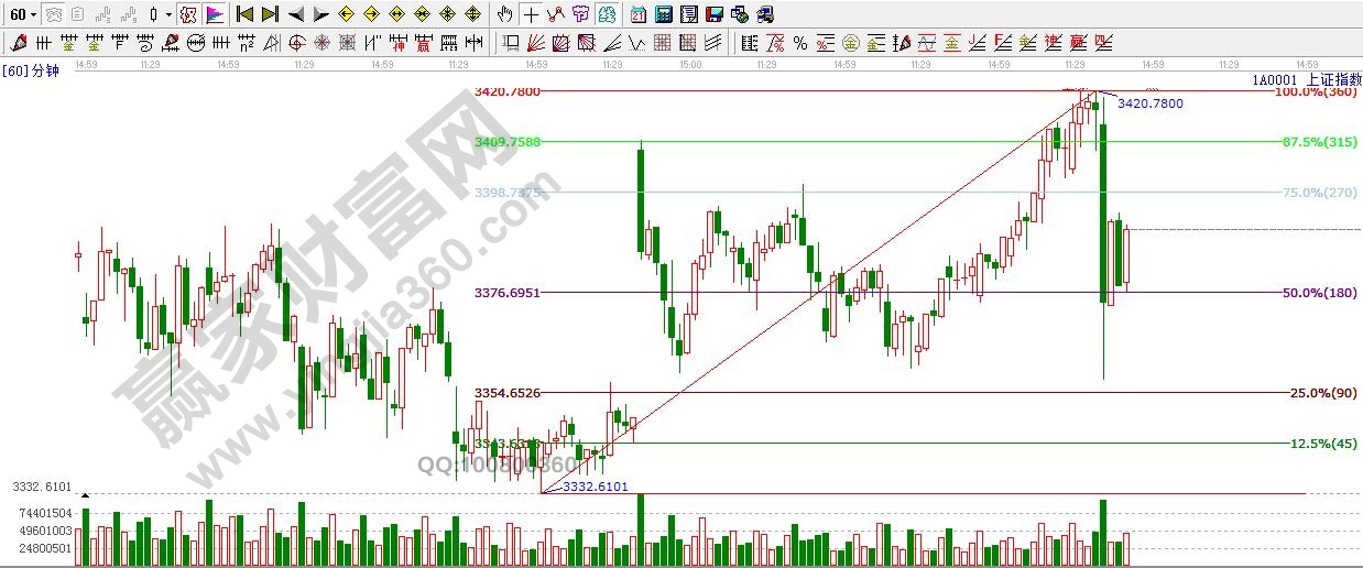 ☆依據(jù)贏家江恩理論系統(tǒng)江恩波段百分比提示:60分百分比顯示,短線阻力3395點(diǎn)、3410點(diǎn)附近,支撐3376點(diǎn),3354點(diǎn)。