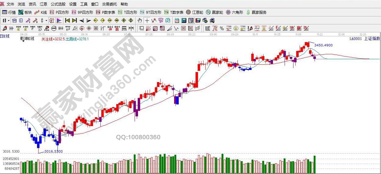 ★依據(jù)贏家江恩理論系統(tǒng)乾坤K線提示:紫色k線,破位紅色關(guān)注線,依據(jù)規(guī)則,看空。