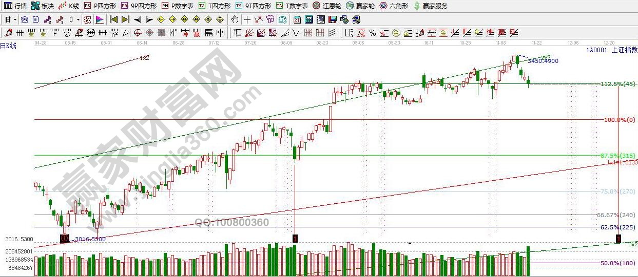 ☆依據(jù)贏家江恩理論系統(tǒng)江恩波段百分比提示:14日在指數(shù)破位角度線后,提醒大家保持謹(jǐn)慎。周五,下跌至45度線3385點(diǎn)附近,此位置仍需謹(jǐn)慎。短周期阻力在3400點(diǎn)附近。
