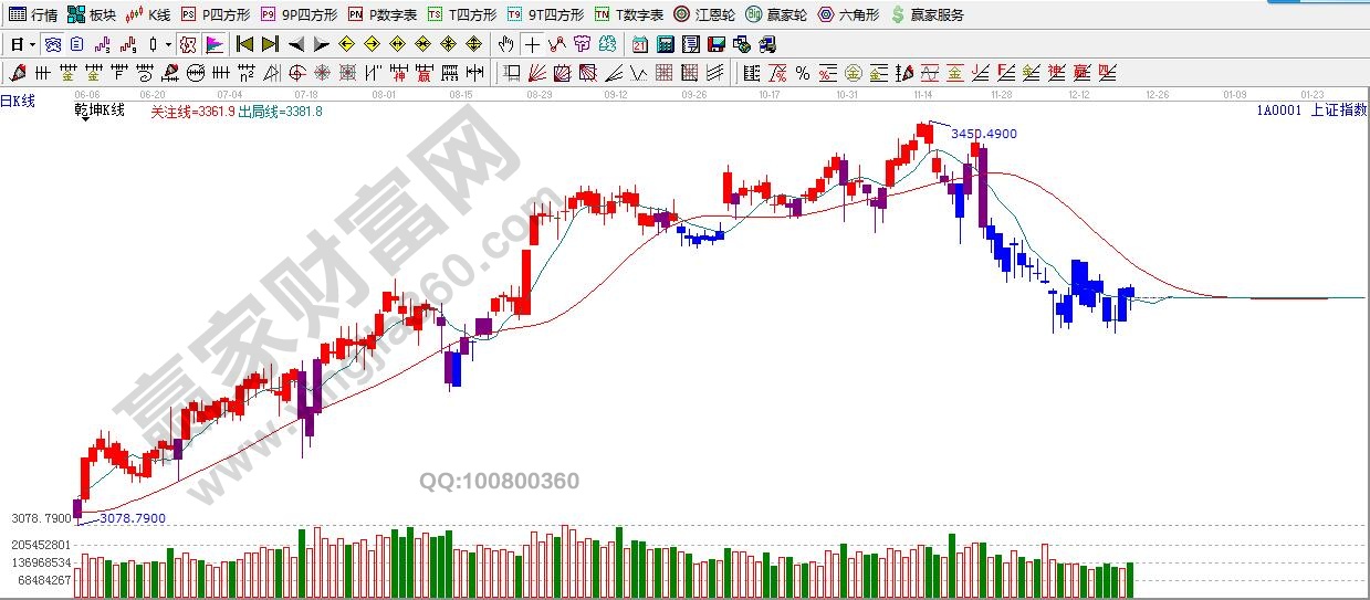 ☆依據(jù)贏家江恩理論系統(tǒng)乾坤K線提示:紅色關(guān)注線之下,k線處于藍(lán)色休息區(qū),依據(jù)規(guī)則,趨勢弱勢,空頭區(qū)域。