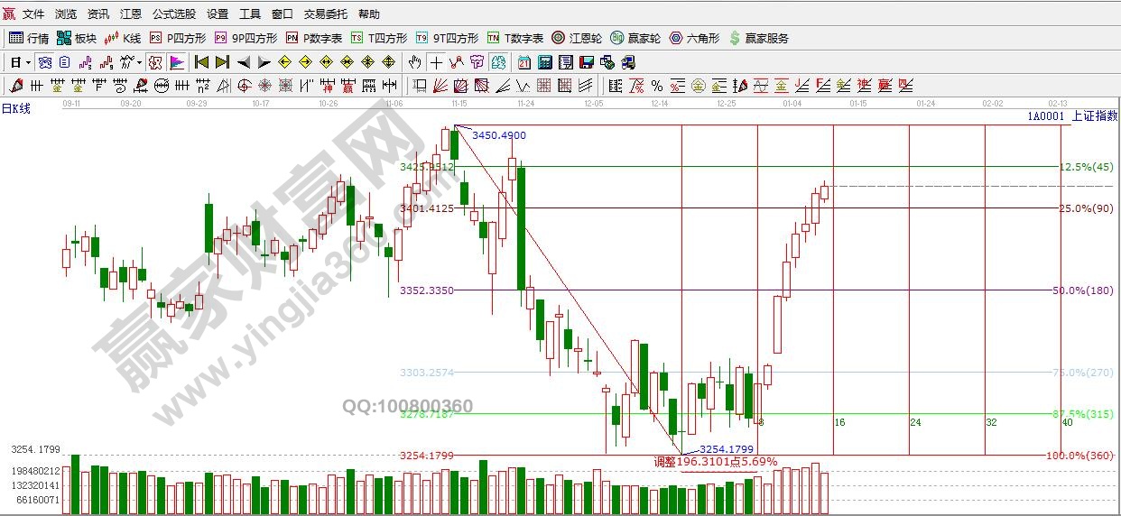 江恩看盤綜述:依據(jù)贏家江恩技術(shù)工具分析得出:周二,滬指在3400點(diǎn)之上整理,繼續(xù)保持強(qiáng)勢(shì)勢(shì)頭,但量能明顯縮小。在1月10日短線窗口臨近之際,縮量上行下短期將迎來調(diào)整,盤中支撐重點(diǎn)關(guān)注90度3401點(diǎn)。阻力位江恩45度線3425點(diǎn)附近,操作上,建議短線切勿盲目追漲,逢高減持降低倉位為主,個(gè)股上繼續(xù)關(guān)注成長性良好的超跌股以及年報(bào)預(yù)增的標(biāo)的。
