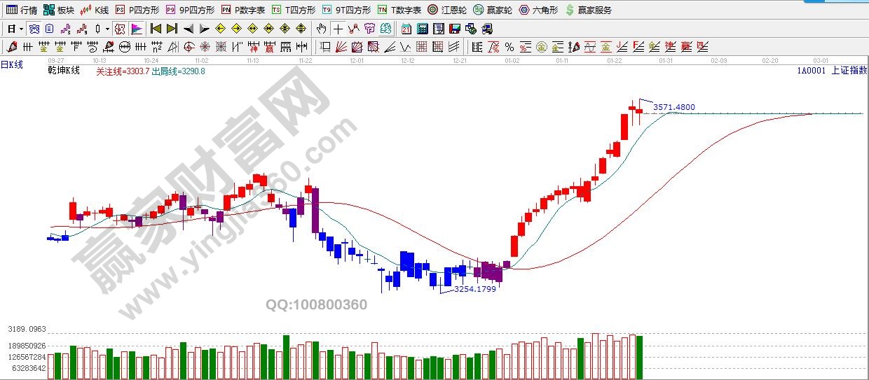 ★依據贏家江恩理論系統乾坤K線提示:滬指依舊處于紅色可操作區域,依據規則,短線出局線之上,繼續多頭。