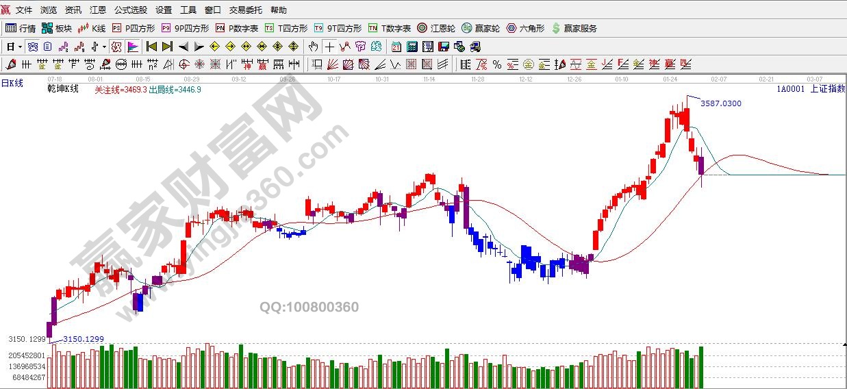★依據贏家江恩理論系統乾坤K線提示:盤中破位紅色關注線,K線由紅色轉變為紫色警示k線。短期保持謹慎。
