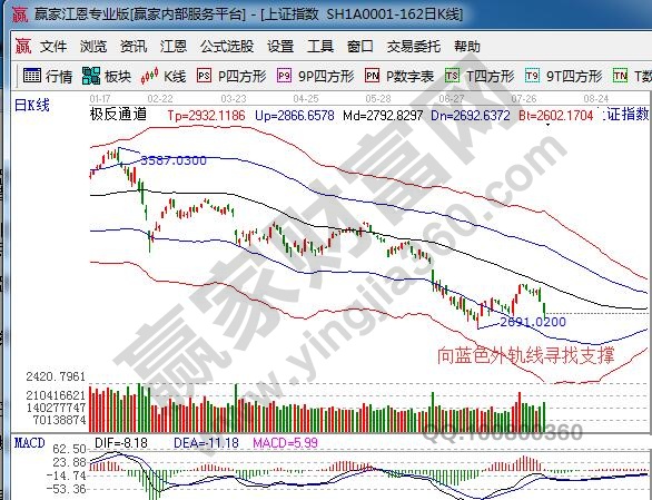 ☆依據贏家江恩理論系統極反通道提示:滬指暴跌中短周期15、30、60分鐘極反通道于午盤出現時價共振,跌幅收窄,短期反攻看5分鐘生命線2772及外軌線2790附近,日線按規則向藍色下軌線尋找支撐。