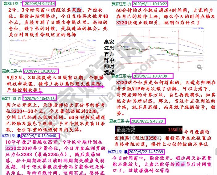 箱體”回顧提出時間進行思考,為何能提前于市場走勢之前就提出相應的策略?當你你又是如何打算的呢?后知后覺者永遠是賣單者,大家看看自己的賬戶,是不是9月份把今年賺的都還給市場了,其中應該不少人8月份就還了利潤,9月份還虧了本金。如這樣都不能讓你明白,擁有一套“投資體系”的重要性,那再來一波牛市,賺的錢最終也不是你的。如果你跟隨專業的團隊進行學習,在9月初2號、3號時間窗口,提醒降低倉位時控制倉位,不僅保住了利潤還可以根據工具信號在9月11日3220時價點做一個反彈,同樣贏家江恩團隊提前測算出3350壓力,9月底指數再探3200附近,分鐘圖再現時價四方信號。