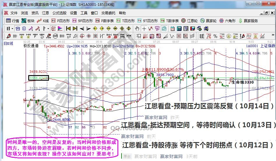 回顧大盤預測分析,上周日贏家周報提前給出3358±20為關鍵壓力區,9月29日時間點低吸的倉位參考此位置做高拋;周一如期抵達3358位置后,連續兩天強調:進入預期壓力區,操作放緩;日線生命線3330在,空間還有反復,等待時間確認。實則,連續兩日在3358-3330區間震蕩洗盤,14日盤中最高3353,最低3332,空間波動非常標準。