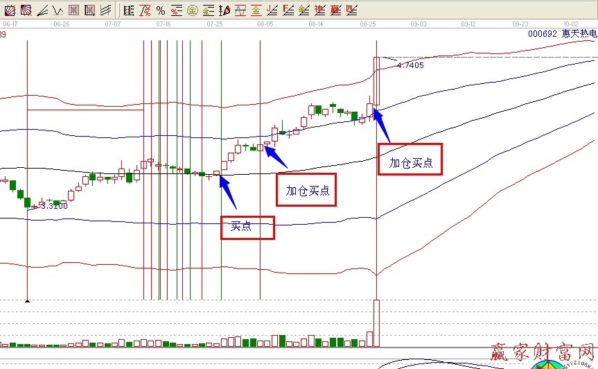 ?。?)而在2014年8月25、26號(hào)前后再次出現(xiàn)時(shí)間變盤點(diǎn),且股價(jià)回踩站穩(wěn)了藍(lán)色外軌線的支撐,時(shí)間價(jià)格共振了,就是波段投資者的加倉(cāng)買點(diǎn)。